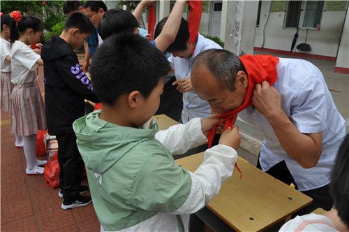 活動(dòng)開(kāi)始時(shí),學(xué)校少先隊(duì)員們?yōu)橹飨_(tái)上的師長(zhǎng)佩戴了紅領(lǐng)巾表達(dá)少先隊(duì)員傳承革命精神的決心。緊接著,在雄壯的國(guó)歌聲中,一面鮮艷的五星紅旗在校園主席臺(tái)前徐徐升起,在場(chǎng)的全體黨員及學(xué)生們對(duì)著行注目禮,并大聲唱起國(guó)歌。而后,由公司總支副書(shū)記周紅代表全體黨員對(duì)同學(xué)們致以節(jié)日的祝賀,祝同學(xué)們節(jié)日愉快,身體健康,并殷切希望全體少年兒童努力學(xué)習(xí),將來(lái)為建設(shè)祖國(guó)貢獻(xiàn)力量!
